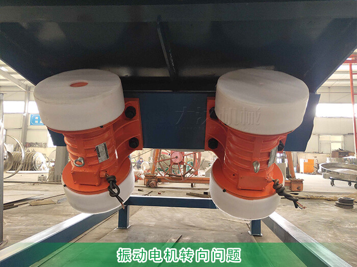 直線篩時使兩臺臥式振動電機作為振動篩,電機的轉(zhuǎn)向和分為正轉(zhuǎn)和反轉(zhuǎn)兩種,正常情況下兩臺電機的轉(zhuǎn)向是相反方向的,但如果用戶在接電時正負極接錯就會引起電機同向旋轉(zhuǎn)就會出現(xiàn)篩面物料不走料的問題;