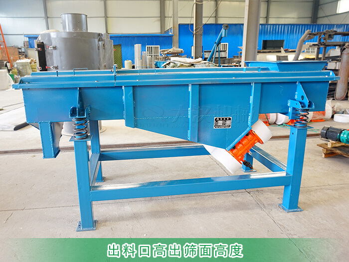 在設(shè)計直線篩時如果出料口高于篩面在生產(chǎn)過程中就會出現(xiàn)物料停滯在篩面不下料的問題。