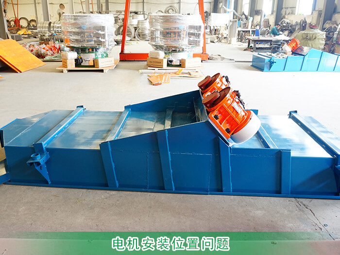 直線篩振動電機的安裝位置有三種分別為底部、兩側(cè)、上部。如果振動電機安裝位置靠近進料口就會出現(xiàn)篩面物料運行一定距離后速度降低終停留在篩面;