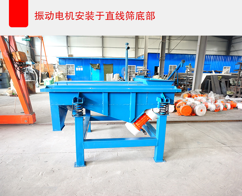 當(dāng)然,也可以通過減少直線篩的篩框等整體寬度來解決這個(gè)問題,但這樣會(huì)造成設(shè)備的有效篩分面積減少,導(dǎo)致處理量變小,影響篩分效率、生產(chǎn)進(jìn)度,所以可以選擇將振動(dòng)電機(jī)安裝在設(shè)備的底部,以此來減少直線篩的整體寬度,這樣即保證了設(shè)備的有效篩分面積,不影響處理量和篩分效率,也大大減小了直線篩設(shè)備的整體寬度。