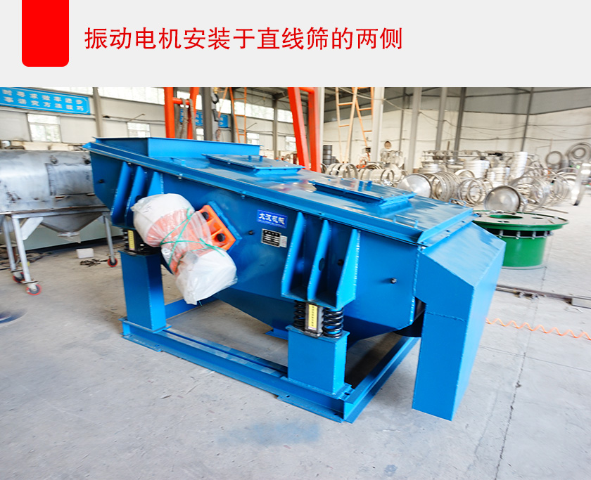 直線振動(dòng)篩的工作原理主要為雙振動(dòng)電機(jī)進(jìn)行驅(qū)動(dòng),利用振動(dòng)電機(jī)的激振力使物料在篩面上進(jìn)行直線運(yùn)動(dòng),達(dá)到篩分效果。