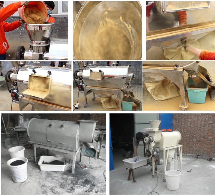 已成功應用于120-180目輕鈣、300目重鈣、400目活性鈣、300目山楂粉、320-500目鋅粉、500目氧化鐵黑等物料,良好篩分取得了效果。測得篩網(wǎng)面積每平方米每小時產(chǎn)量約1噸,經(jīng)測篩分精度在95%以上,空氣含塵量小于10mg/m3。