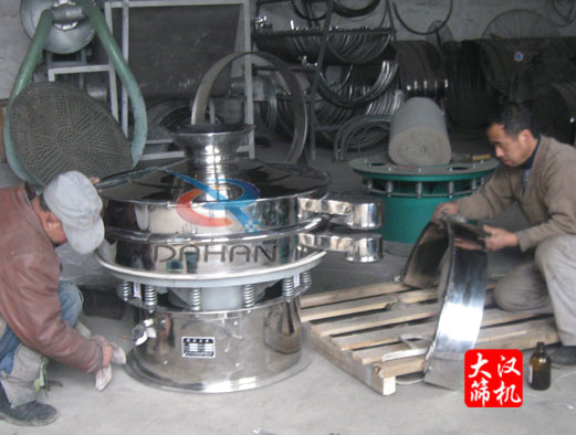 大漢機械生產(chǎn)人員在安裝振動篩