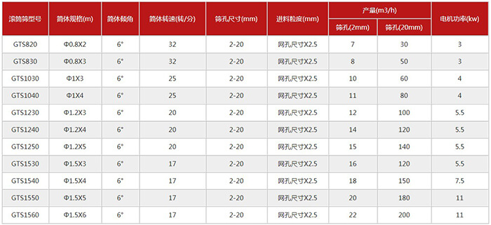 移動式滾筒篩主要參數(shù)
