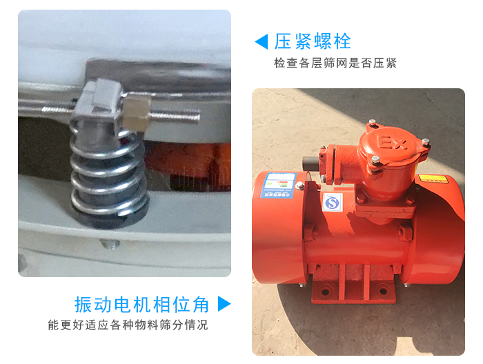 ⑶開機(jī)前,應(yīng)先檢查各壓緊螺栓的緊固程度,及各料口的位置是否與接料器對(duì)正,并觀察振動(dòng)電機(jī)是否能正常轉(zhuǎn)動(dòng)及彈簧受力有無阻礙,檢查各層篩網(wǎng)是否壓緊。